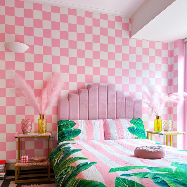 - Checkmate checkered wallpaper in pink candy, from £22 from Sorbet Dreams – buy here
