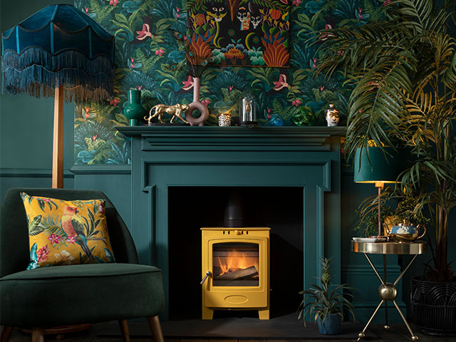 This joy-filled living room ticks all the forestcore boxes. Lush woodland wallpaper? Check. Oodles of plants? Check. Deep green paint shades? Velvet? Check and check. But what it also does, very nicely indeed, is incorporate a real wood burning stove. The beautiful Arada Stoves are crafted in Britain out of raw steel and welded at 1500°C with a precise finish, and they’ve just launched their new bold colour edit. Good Homes loves the yellow stove.