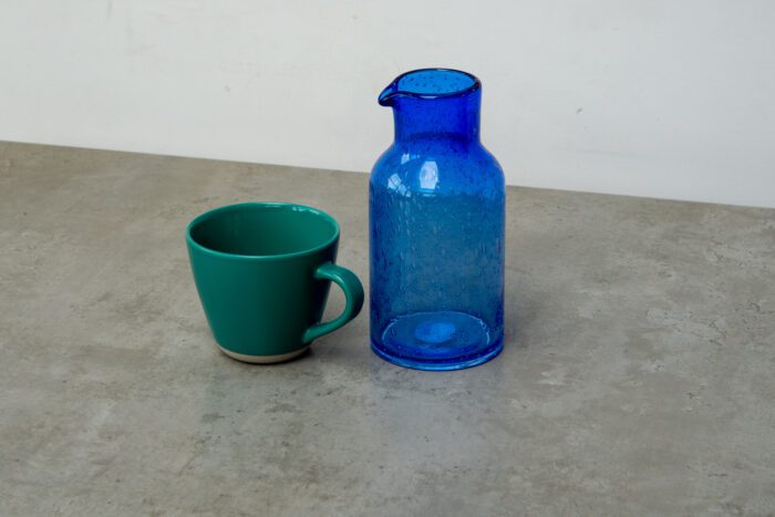 Anticipate sunny days in the garden with this stunning blue glass carafe. This carafe looks elegant and delicate, but has a sturdy feel. The Colour Me Happy carafe from Pure Table Top is designed with bubbles in the glass, and is ideal for brightening up any table. You can also add a coordinating green or blue tumbler.