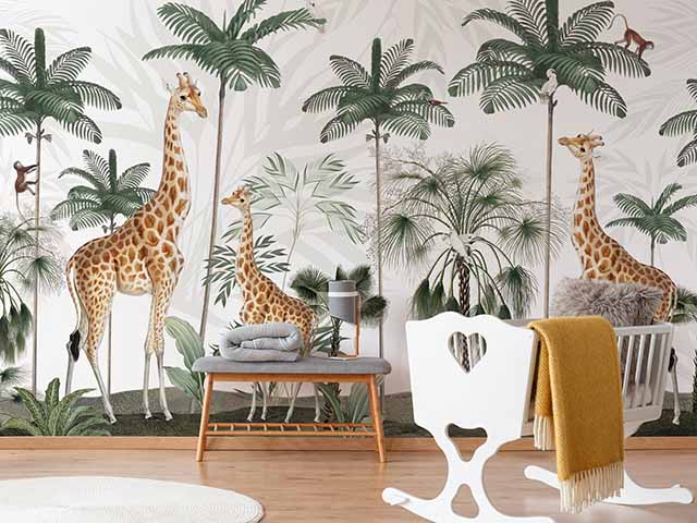 Bring your jungle nursery to life with a feature wall. This beautiful, botanical giraffe wallpaper is the perfect fit and immediately transports you to the jungle. Whats more, you can set the size yourself to make sure it’s the perfect fit for your nursery. We’re obsessed!