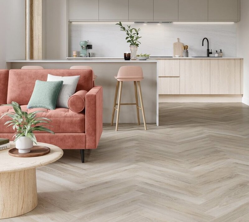 Available in three striking formats – herringbone, plank, and tile – each features a selection of tones that authentically replicate contemporary wood, stone, and concrete designs. The multi-layered construction fuses style with supreme strength and ultimate comfort underfoot, and among the standout benefits of the range is the implementation of advanced 5G press-fit technology, which allows simple installation by your chosen flooring professional.