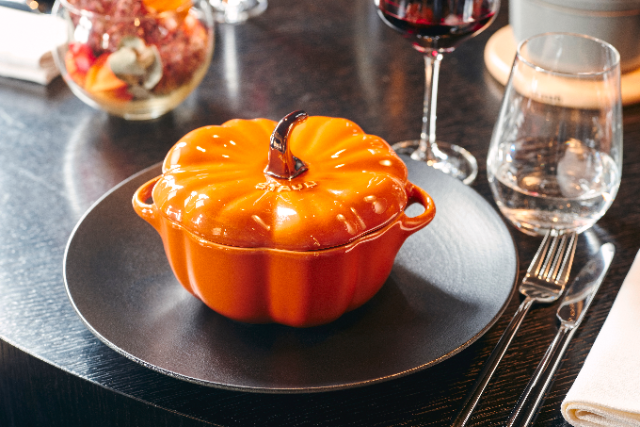 Bring the autumn vibes into your cooking with this gorgeous inspired plate. The cream is chic and classic, but the pumpkin shape brings a nod to the season.