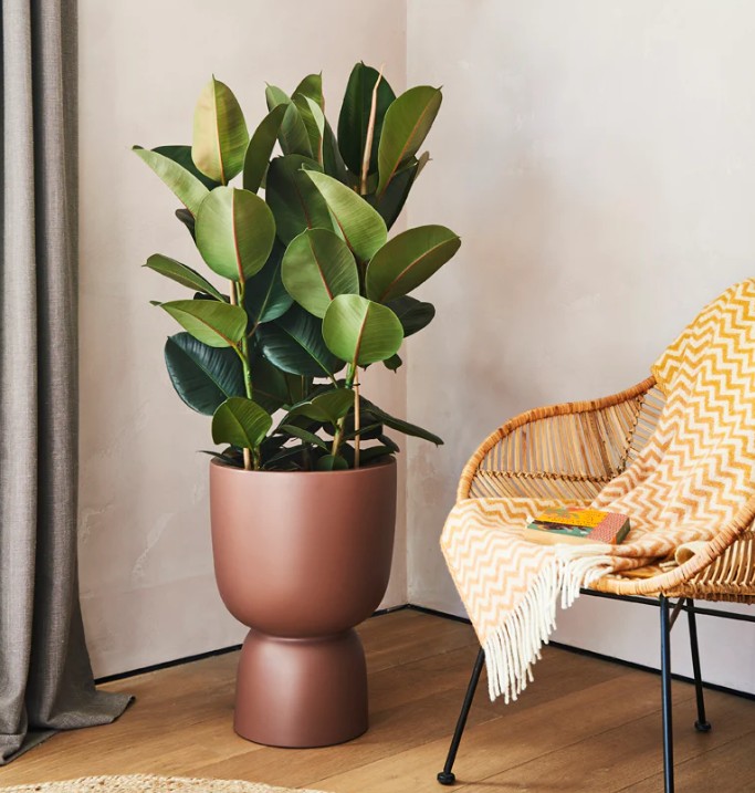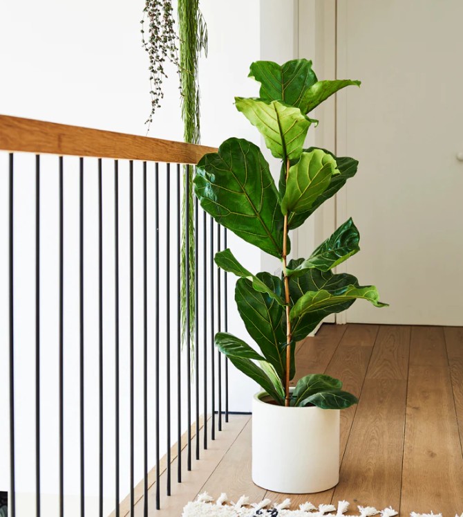 “The fiddle leaf fig boasts large, glossy leaves and a tree-like structure that can reach a great height, making it a stunning centrepiece.