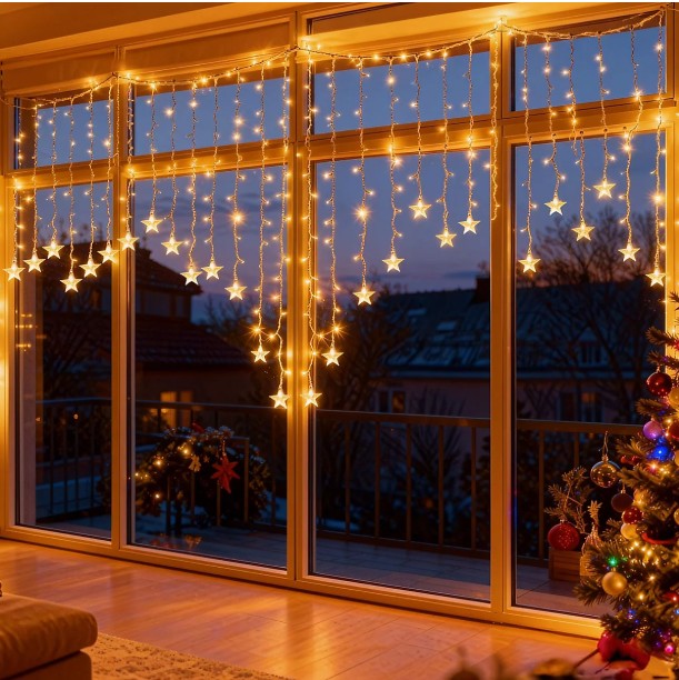 Christmas Star String Light Indoor Curtain Icicle Light 3M x 1.5M 168 LED Warm, £15.99 from B&Q – buy here