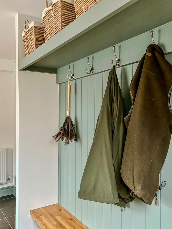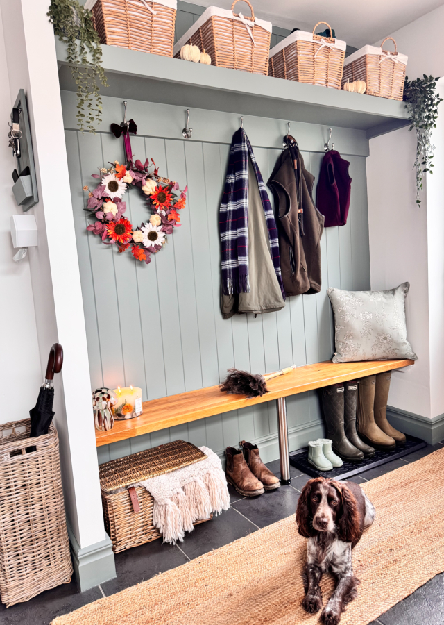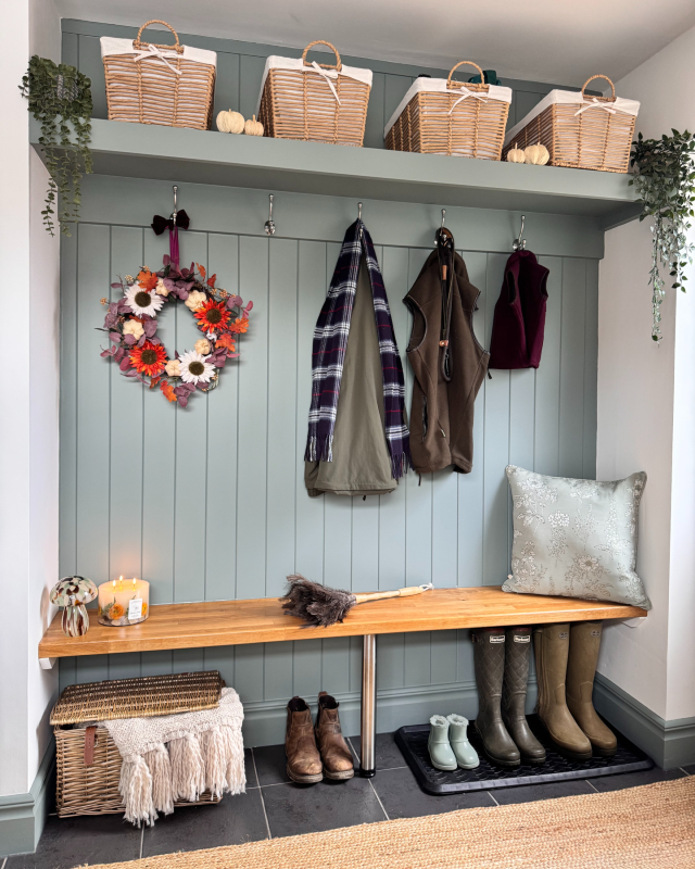 The boot room was transformed into a beautifully characterful and inviting space—just in time for autumn. As Leigh-Anne shared, “The panelling has added so much character to what was previously a very dull white room!”