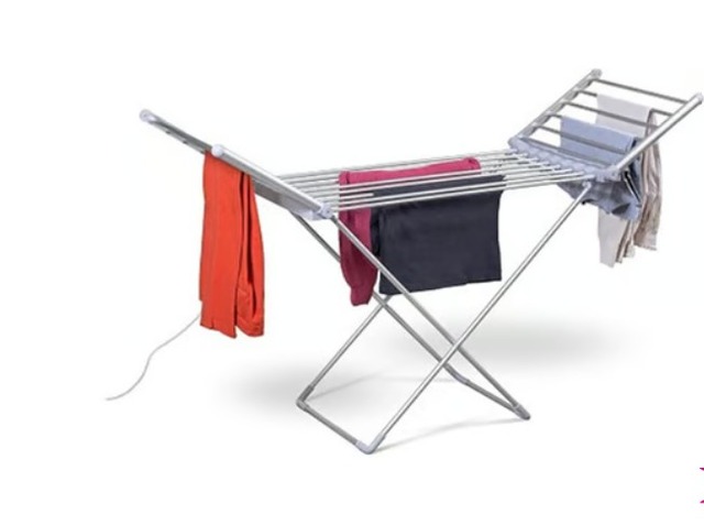 A heated clothes airer looks like a standard clothes horse but plugs in to create individually heated bars to hang your clothes from, helping them dry quicker.
