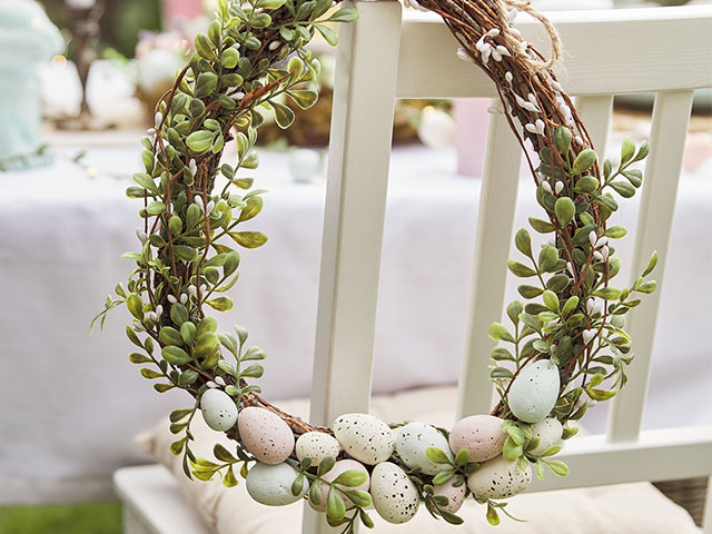 This pared-back oval wreath from Lights4fun adds a cool touch to each of your dining chairs. It’s got earthy green faux foliage and 12 pastel-speckled eggs (which, yes, do look rather temptingly like mini eggs) on a natural effect 35cm frame. Lights4fun also sell micro-lights separately, which you can wind around the wreath for a twinkly extra.