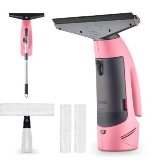 The Swan Cordless Window Vacuum comes with a spray bottle, cloth holder, two washable microfibre cloths and an extension pole – everything you need for that perfect finish.
