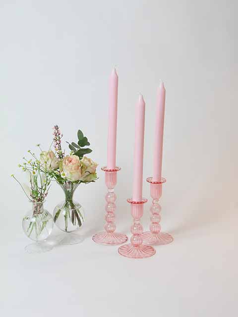 Set the mood of your table with these stunning pink candlesticks.