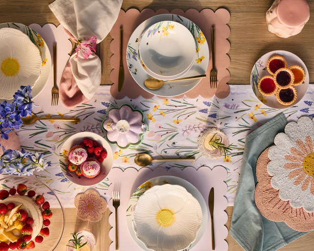 Botanicals are perfect for springtime tablescapes, and this gorgeous runner and tableware combo from Next is truly something special.