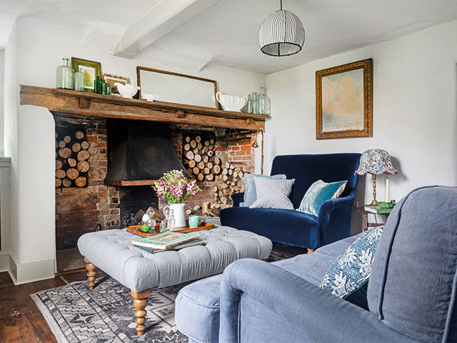 ‘We replaced the concrete floor with suspended reclaimed flooring, lime-plastered the walls, installed central heating, repaired all the woodwork, refurbished the fireplaces, put in casement windows, opened up the kitchen space and replaced the kitchen and bathrooms,’ says Sarah.