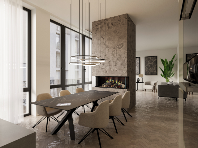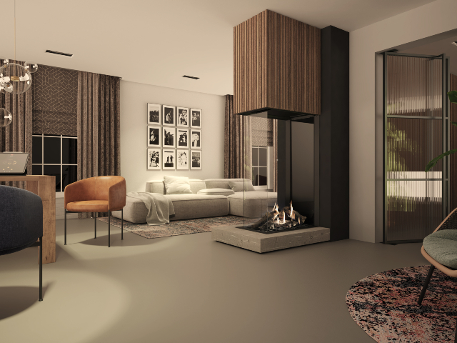 Dik Geurts fires also extend to elegant and practical built-in wood fires with a choice of sizes, capacities and aspects. As well as standard chimney inserts, there are two-sided corner fires, three-sided panoramic fires and even see-through tunnel fires that can be viewed from adjoining rooms.