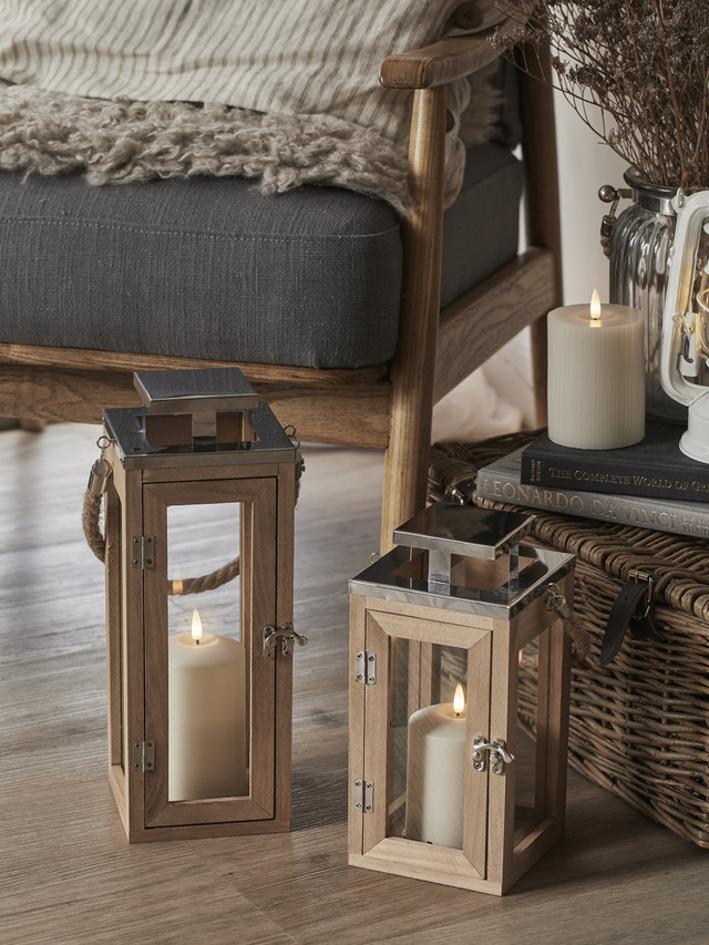 - Small Salcombe wooden lantern with TruGlow candle, £29.99 from Lights4fun – buy here