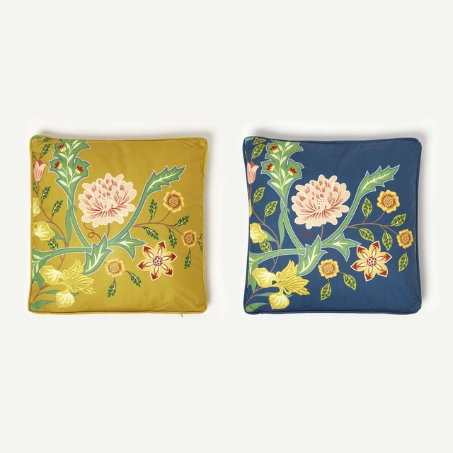 - Set of 2 teal and yellow vintage floral decorative cushions, £24.99 from Homescapes – buy here