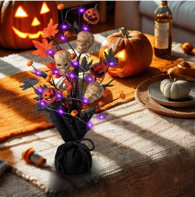A Halloween tree is a tree, of any size, as small or large as you’d like, that is decorated with autumn and spooky season themed decorations.